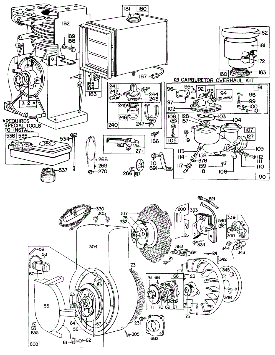 Parts for Briggs & Stratton 144402-0131-99: Carb,A / C,Fuel Tank,Rewind Parts