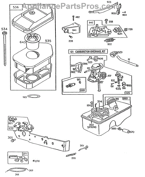 Parts for Briggs & Stratton 096502-3511-01: Carb,Air Cleaner,Fuel Tank Parts