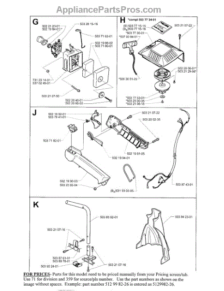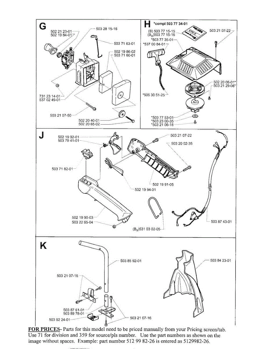 Parts for Husqvarna 225BX: Carb,Air Fltr,Starter,Cntrl Handle,Handle Parts