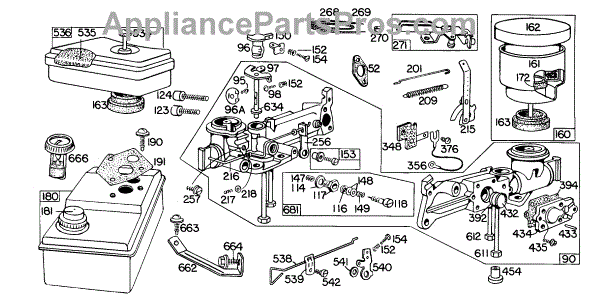 Parts for Briggs & Stratton 081996-9455-50: Carb Assy, A / C Grps,Fueltank Parts