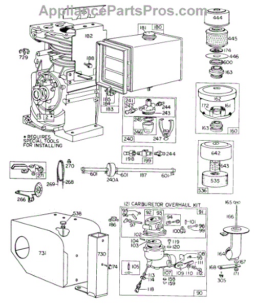 Parts for Briggs & Stratton 146407-1123-99: Carb Assy,Fuel Tank, A / C Parts