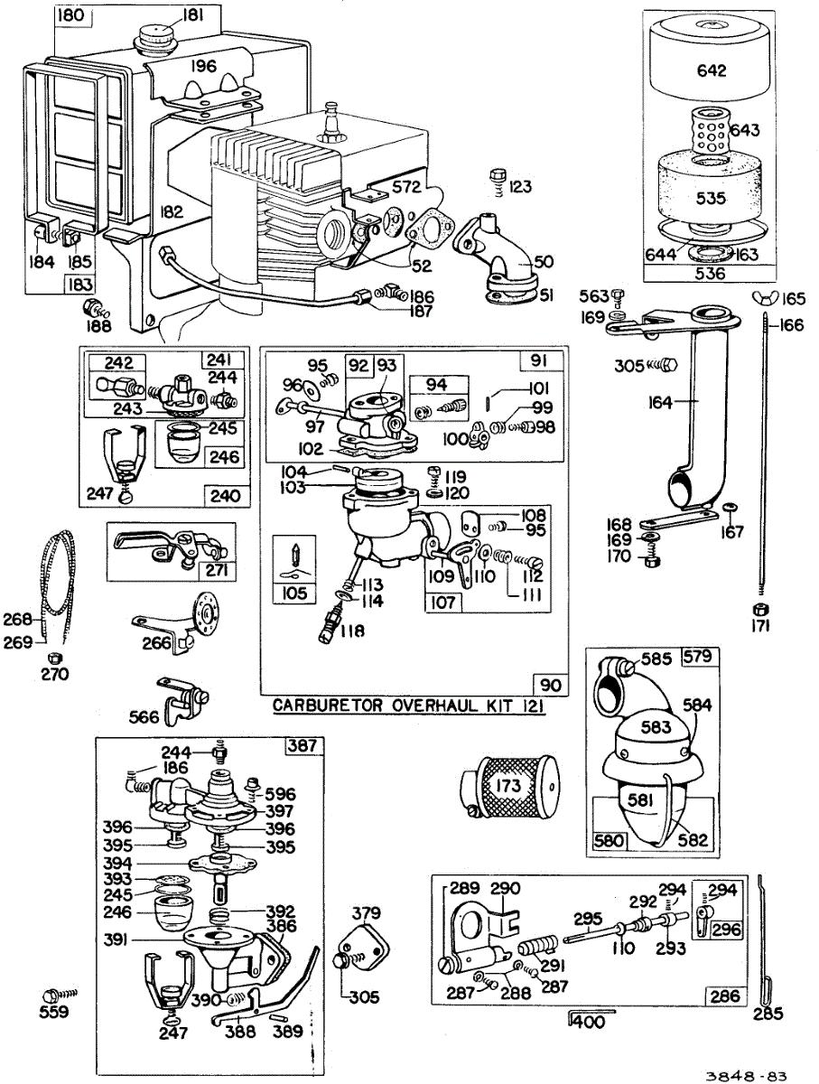 Parts for Briggs & Stratton 231431-0148-99: Carb Assy,Fuel Tank, A / C Parts