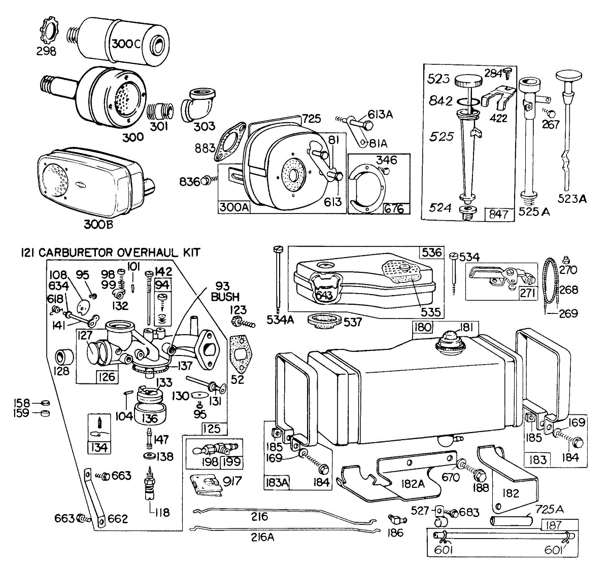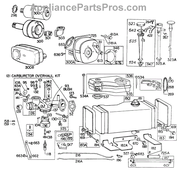 Parts for Briggs & Stratton 190702-5151-99: Carb, Fuel Tank, A / C, Muffler Parts