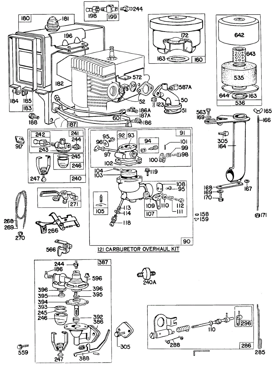 Parts for Briggs & Stratton 233431-0288-99: Carb,Fueltank,A / C,Electrical Parts