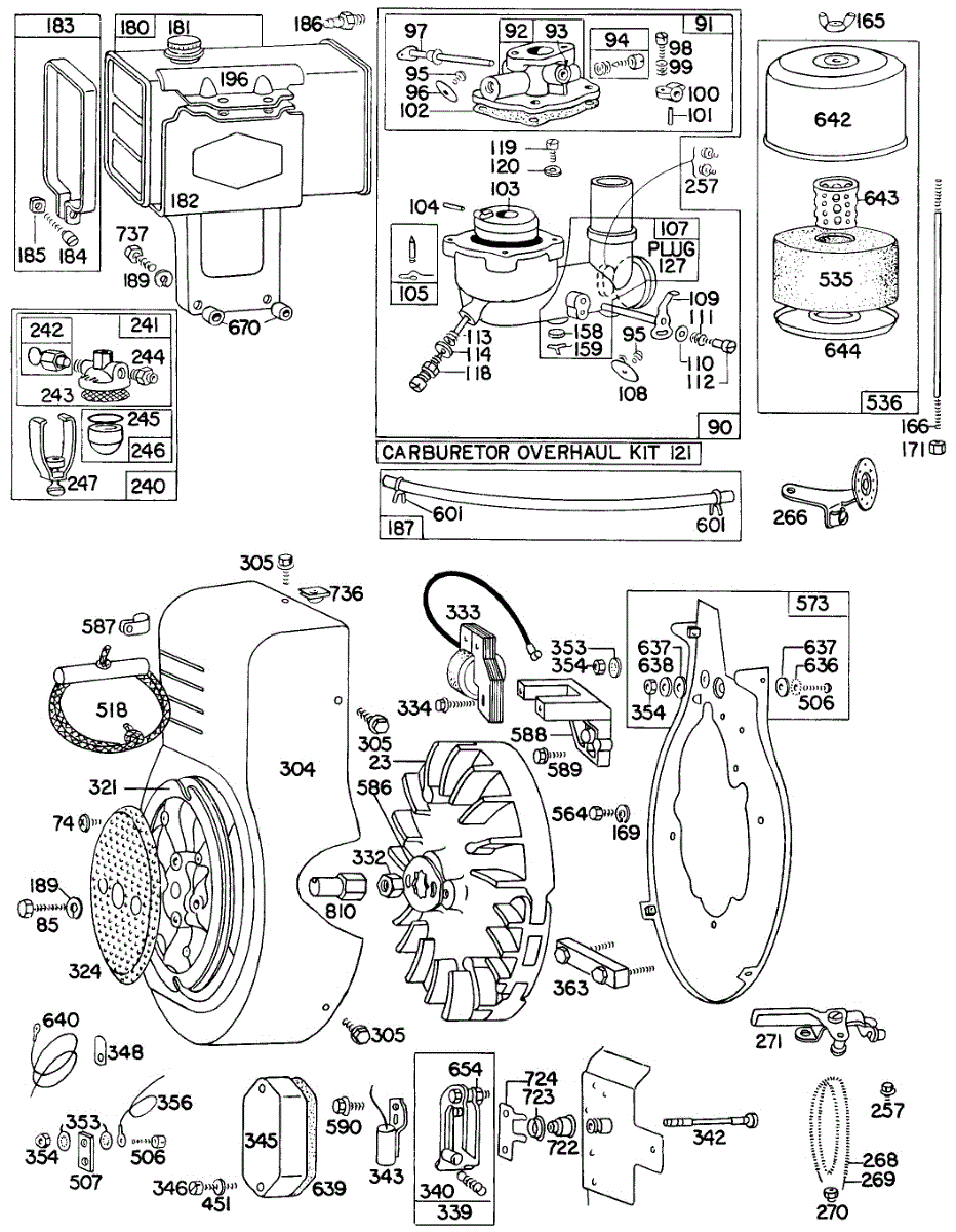 Parts for Briggs & Stratton 300424-0121-99: Carb,Fueltank,A / C,Blowerhsg Parts