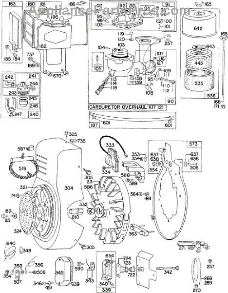 Parts for Briggs & Stratton 301431-0113-99: Carb,Fueltank,A / C,Blowerhsg Parts