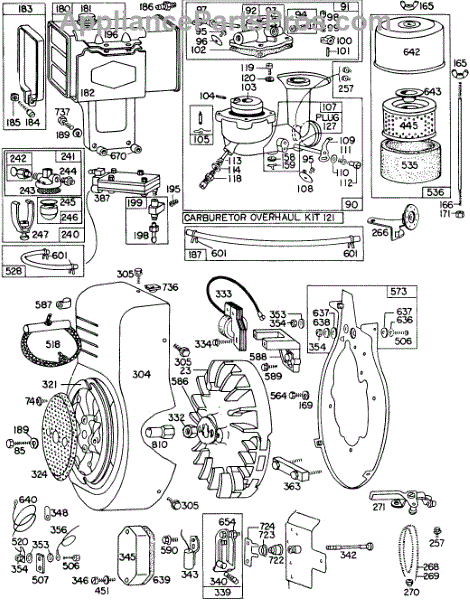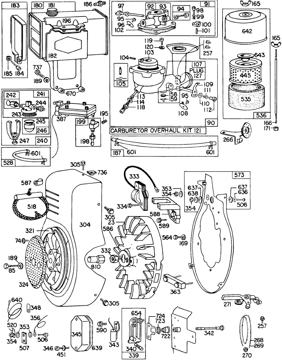 Parts for Briggs & Stratton 325431-0114-99: Carb,Fueltank,A / C,Blowerhsg Parts