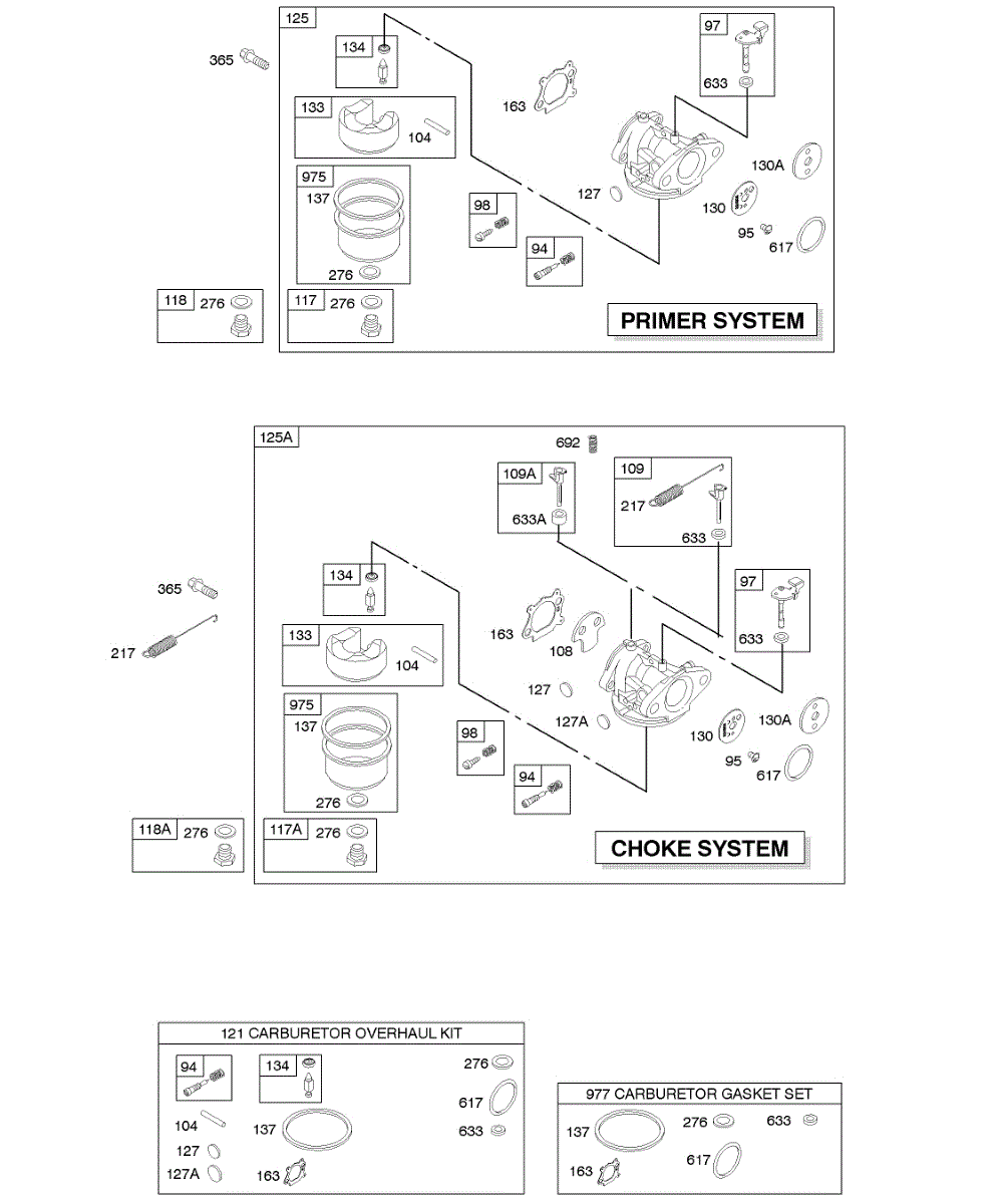 Parts for Briggs & Stratton 129802-2825-E1: Carburator Parts