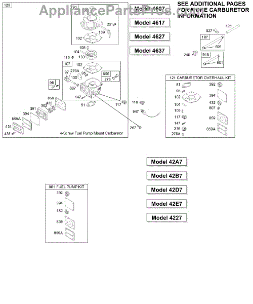 Parts for Briggs & Stratton 460777-1888-A1: Carburetor 1, Kit / Gasket Sets - Carburetor 1, Kit / Gasket Sets - Fuel Pump 1 Parts