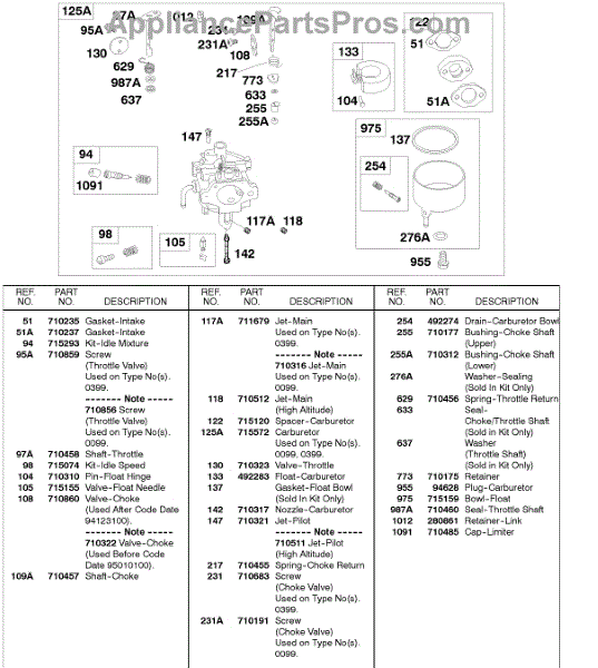 Parts for Briggs & Stratton 185432-0247-E1: Carburetor Parts