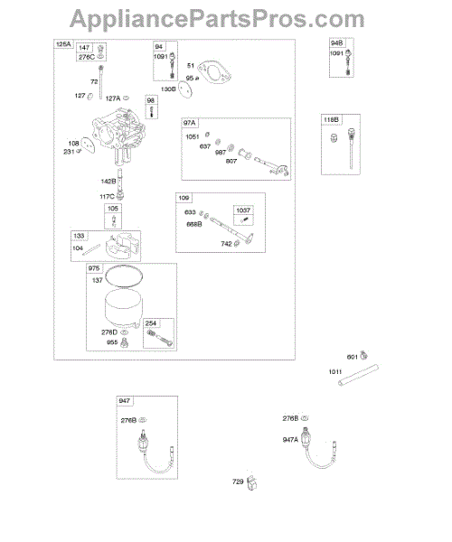 Parts for Briggs & Stratton 350777-0035-01: Carburetor #1 Parts
