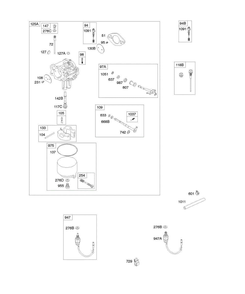 Parts for Briggs & Stratton 350777-1124-A1: Carburetor #1 Parts