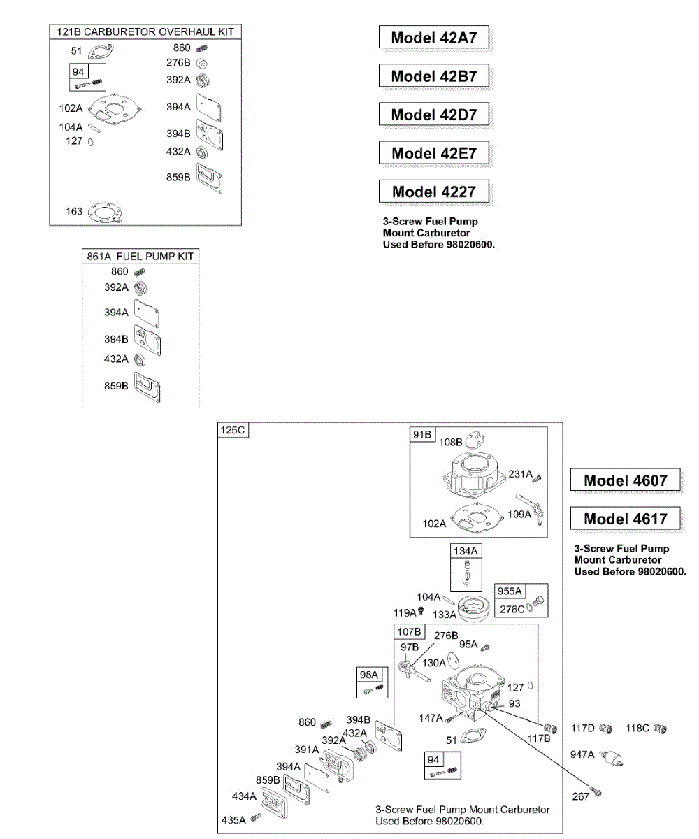 Parts for Briggs & Stratton 460777-1276-01: Carburetor 2, Kit / Gasket Sets - Carburetor 2, Kit / Gasket Sets - Fuel Pump 2 Parts