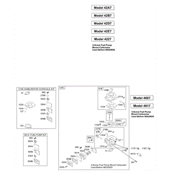Parts for Briggs & Stratton 461707-0145-E3: Carburetor 2, Kit / Gasket Sets - Carburetor 2, Kit / Gasket Sets - Fuel Pump 2 Parts