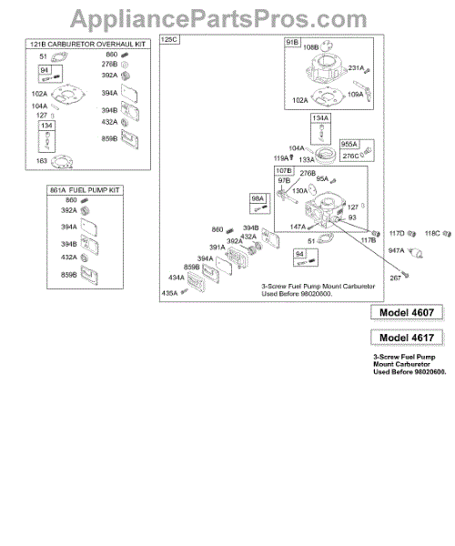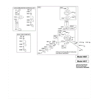 Parts for Briggs & Stratton 463707-0168-E1: Carburetor 2, Kit / Gasket Sets - Carburetor 2, Kit / Gasket Sets - Fuel Pump 2 Parts