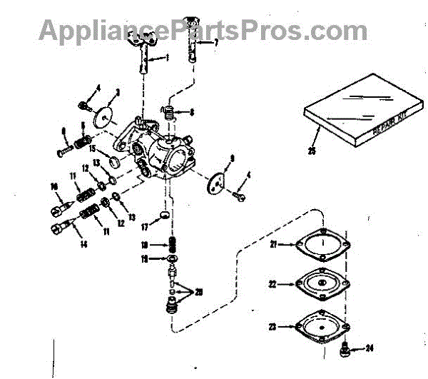 Parts for Craftsman 14384300: Carburetor No. 29820 Parts