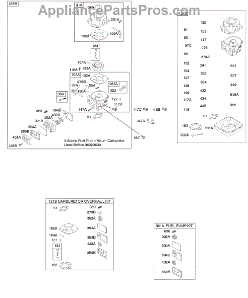 This fuel pump kit is made for use with lawn and garden equipment with small engines. The kit comes with all the diaphragms, gaskets, and additional parts needed to completely rebuild a fuel pump. It may be required if the lawn tool has fuel pump issues such as sluggish performance, leaks, and other problems. It can be used to fix the most common issues related to worn out diaphragms and gaskets.The fuel pump in lawn and garden equipment is a component that helps bring fuel from the tank to the engine when the carburetor is mounted at a lower position than the carburetor. With these kit parts, many issues with the fuel pump can be alleviated. Replacement requires a nut drive, a wrench set, and a socket set. The fuel pump will need to be disassembled to replace the parts that are not working correctly.This fuel pump kit is a genuine OEM replacement part sourced directly from the manufacturer. It's sold as an individual kit. The kit is designed to be used in lawnmowers and snowblowers manufactured by MasterCut, Briggs & Stratton, Craftsman, Simplicity, Toro, and Cub Cadet.
