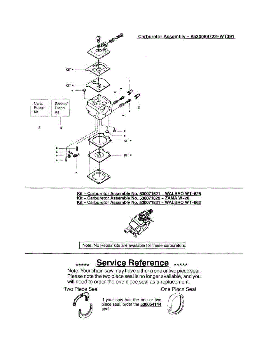 Parts for Poulan 220 TYPE 1-3: Carburetor #530069722 - Wt391 Parts