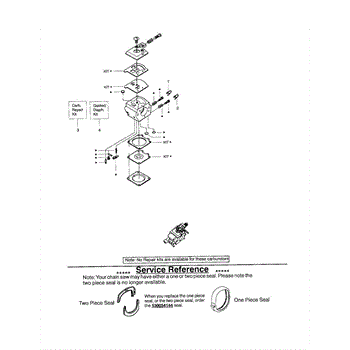 This carburetor repair kit is made for use in chainsaws by several manufacturers. It has each of the needed components to get a chainsaw back into working order if the carburetor is damaged or no longer working. The carburetor is the component in a chainsaw that controls how fuel and air mix together before being ignited in the cylinder to keep the engine running. One of the signs that the carburetor may be having problems is if the chainsaw doesn't want to start its engine even if the fuel tank is completely full. Testing the carburetor can be done by taking out the air filter and adding a small amount of fuel to the carburetor. Pull the starter rope and watch to see if the engine turns on for a few seconds before stopping. If this is the case, the carburetor will need to be cleaned, rebuilt, or replaced. This individual carburetor repair kit is designed to work with chainsaws by Poulan, Poulan Pro, Craftsman, and Husqvarna. It is a genuine OEM product that is provided directly by the manufacturer. A few basic tools and work gloves may be needed to use the repair kit.