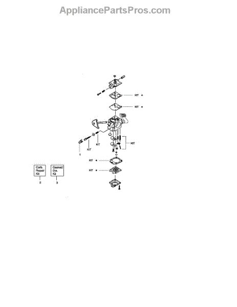 Carburetor gasket kit for chainsaws, trimmers, blowers, and edgers. Replace when experiencing fuel leaks or poor engine performance. Verify fit.