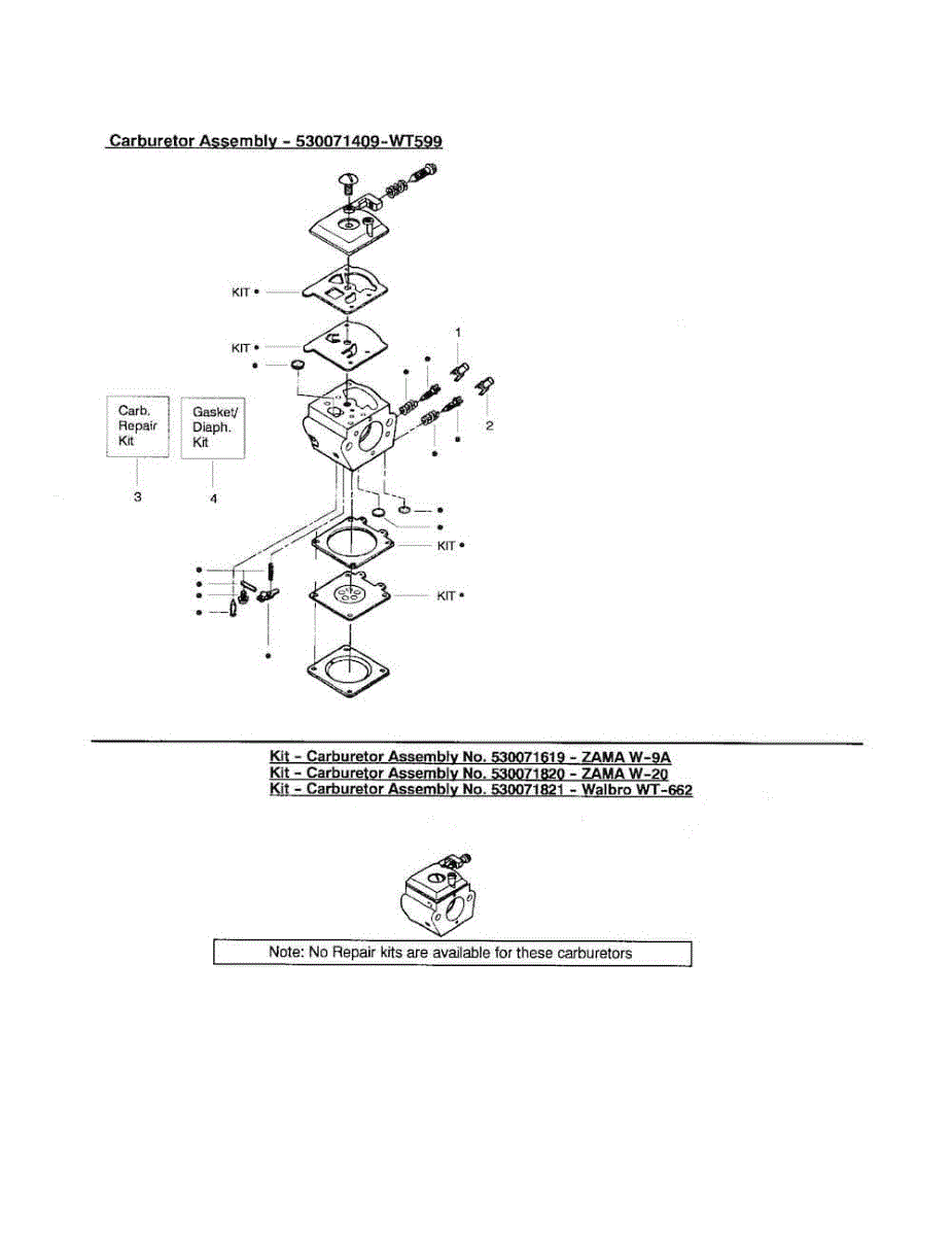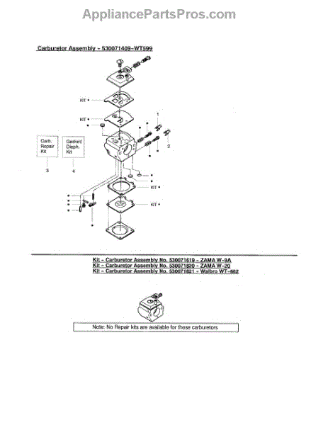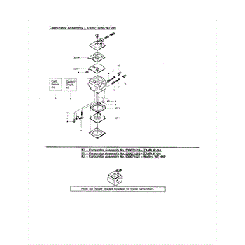 Carburetor assembly kit mixes air and fuel for your chainsaw, trimmer, or blower engine. Replace when engine runs rough, stalls, or won't start. Verify fit with your model number.