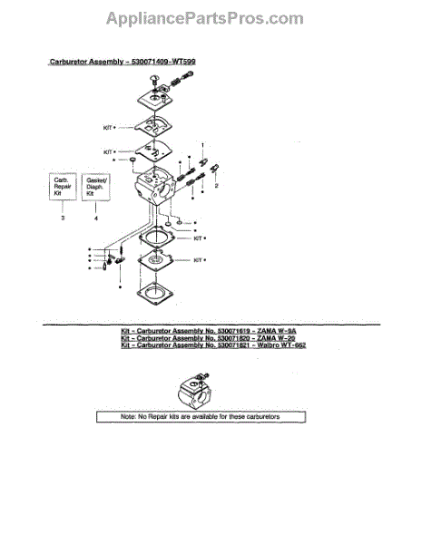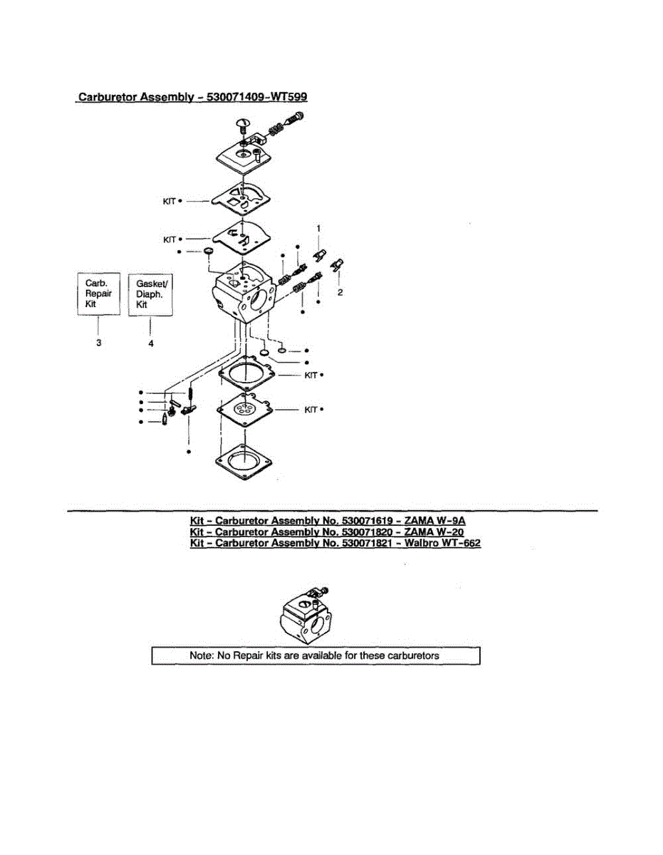 Parts for Poulan 2250LE TYPE 2: Carburetor 530071409 - Wt599 Parts