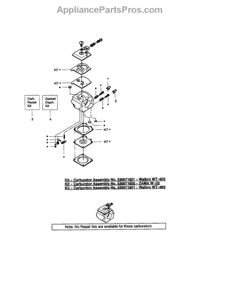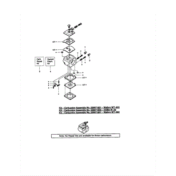 Carburetor gasket kit for chainsaws, trimmers, blowers, and edgers. Replace when experiencing fuel leaks or poor engine performance. Verify fit.