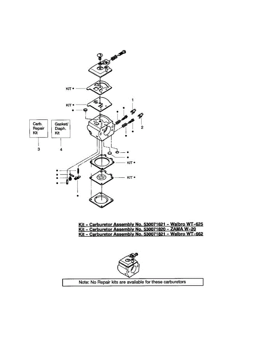 Parts for Poulan 2550LE TYPE 2: Carburetor #530071409-Wt599 Parts