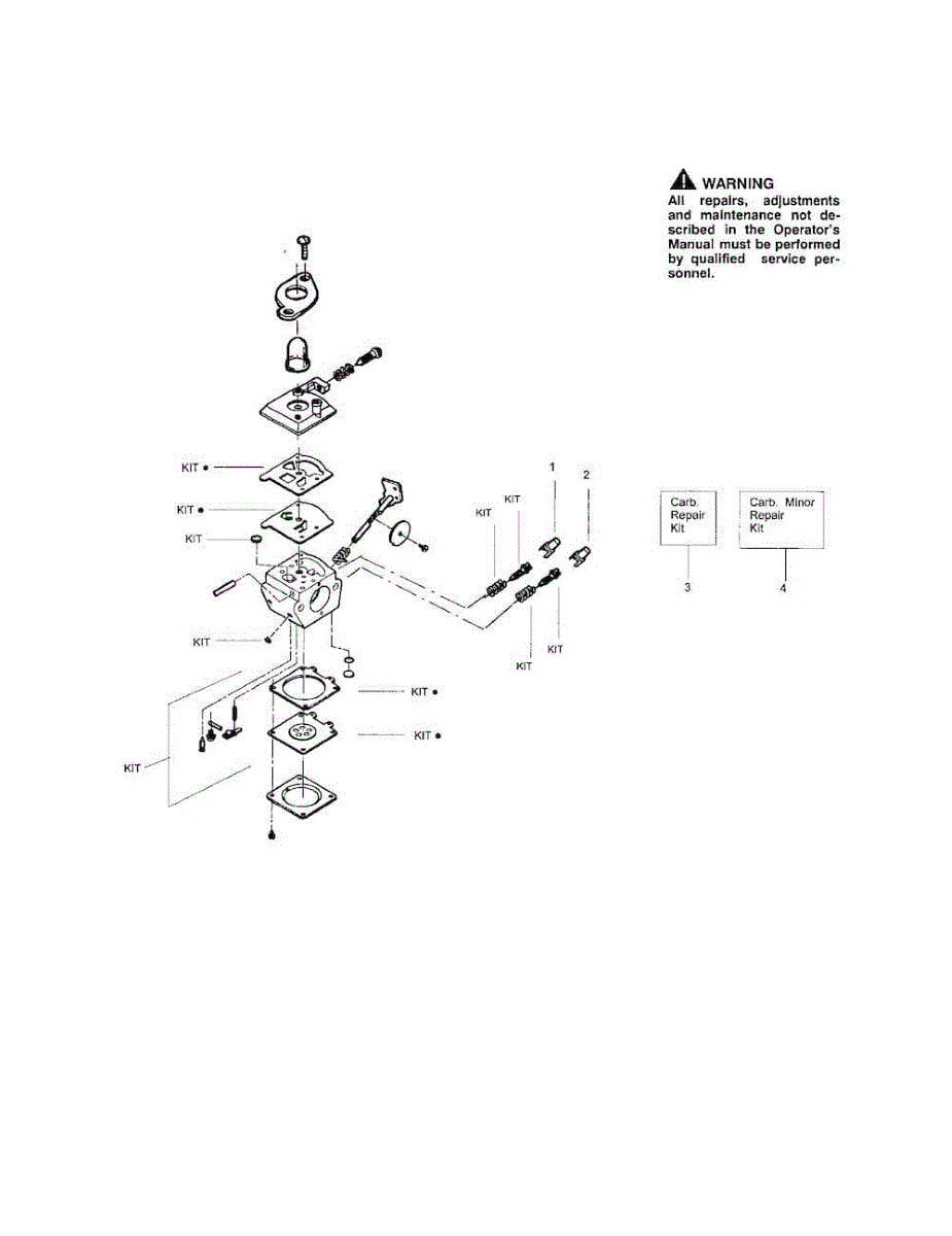 Carburetor repair kit for gas line trimmers and outdoor power equipment. Includes all parts to rebuild worn or damaged carburetors. Use when rebuild needed.