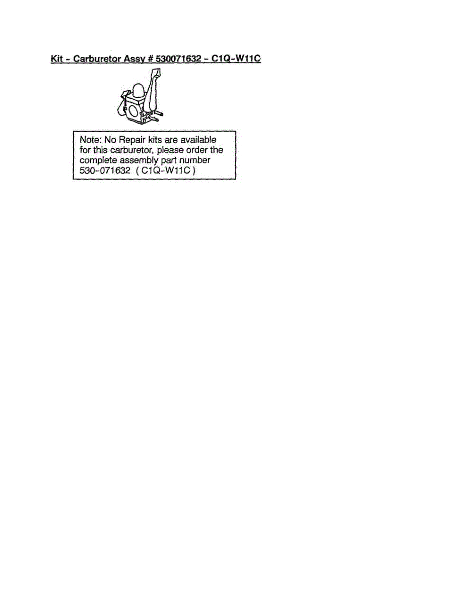 Parts for Weedeater WT200LE TYPE 1: Carburetor #530071632 (C1q-W11c) Parts