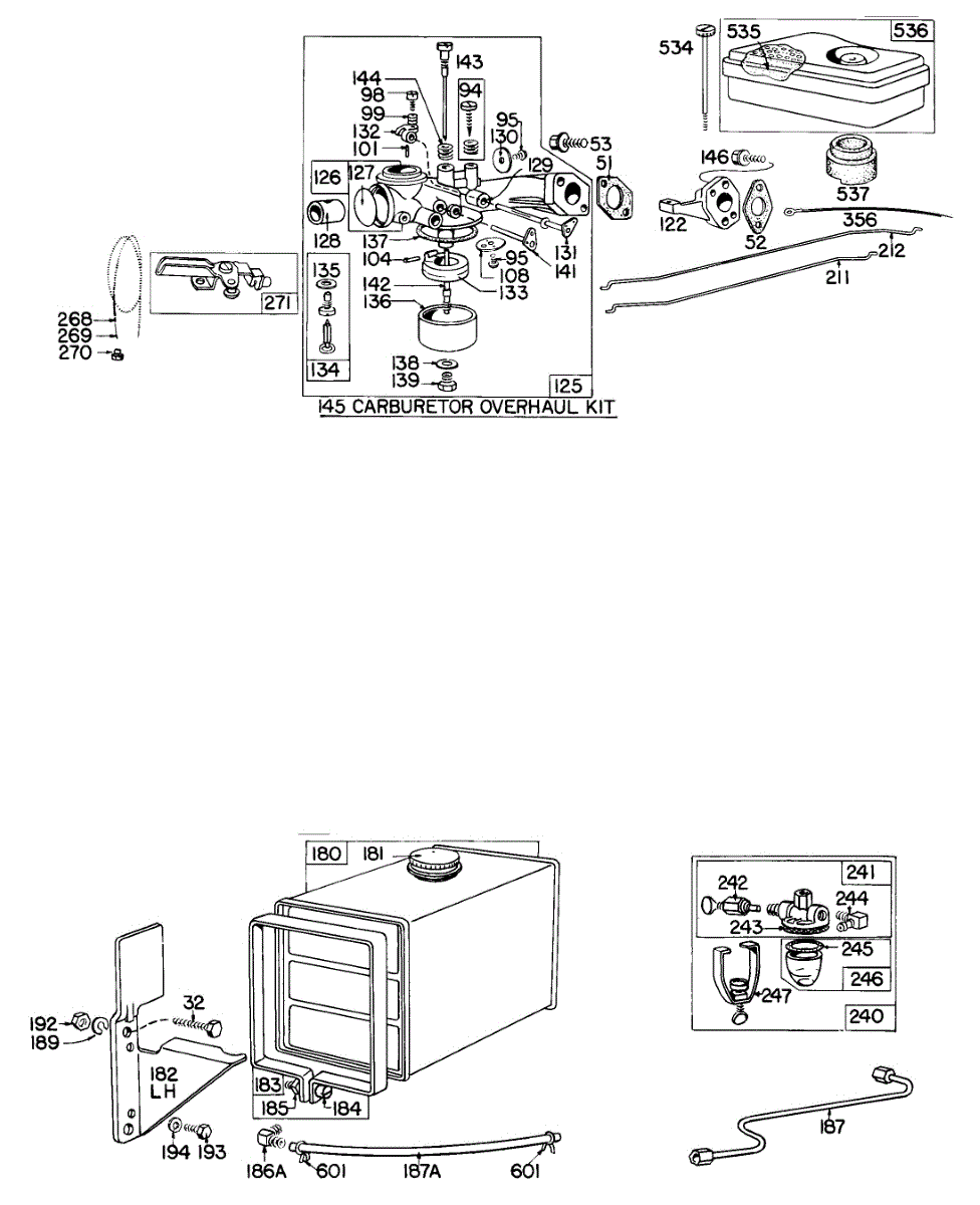 Parts for Briggs & Stratton 144702-0137-99: Carburetor, A / C, Fuel Tank Parts