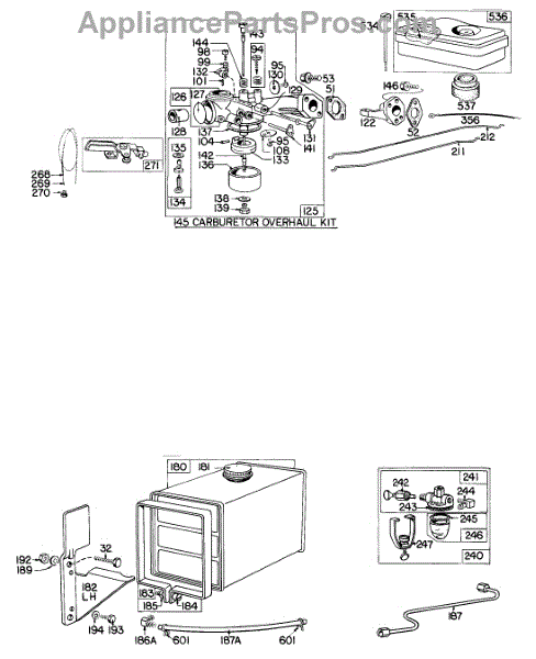 Parts for Briggs & Stratton 144702-0138-99: Carburetor, A / C, Fuel Tank Parts
