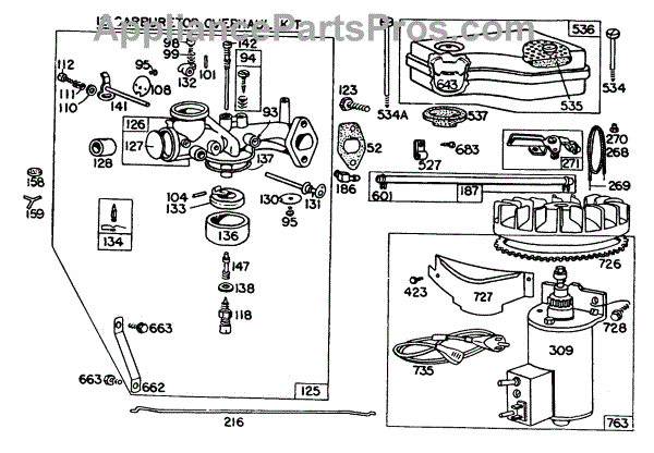 This is an OEM replacement carburetor overhaul kit. It can be used with select models of lawn and garden equipment engines. The carburetor is one of the most important parts of the engine. It is responsible for creating and circulating the air/fuel mixture that is used to initiate combustion in the engine. Over time, the carburetor's gaskets and parts can become worn, damaged, or brittle due to age, constant heat and vibrations, and exposure to chemicals in fuel. It is easy and more affordable to rebuild and replace gaskets than to buy a new unit. This genuine OEM carburetor overhaul kit is manufactured by Briggs & Stratton to exact standards. It is compatible with select engines from the brand, as well as certain models from Toro. This overhaul kit includes all of the necessary diaphragms, gaskets, and parts to rebuild the carburetor and is sold as an individual kit. A screwdriver and pliers will be required for replacement of the carburetor parts. Be sure to replace gaskets one at a time to avoid confusion and keep the equipment in the correct functioning condition. Clean the areas where gaskets are seated to ensure a proper seal and always work in a well-ventilated area when performing engine repairs.