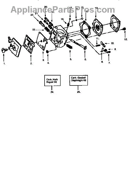 This is a carburetor repair kit for lawn and garden equipment. It can be used in situations where the carburetor is clogged and no longer capable of putting the right amount of fuel through the engine. The carburetor is a part that is responsible for mixing fuel and air inside of a combustion engine. It then sends the mixture to the cylinder to power the engine. A yard and garden tool with a carburetor can experience a build-up of debris or stickier material over time that can clog up the carburetor and create issues with the engine. This can make the trimmer run sluggish or cause problems with other components. If the situation gets worse, the engine may not start at all. When this happens, a carburetor repair kit has the needed components to rebuild the carburetor.This carburetor repair kit is a genuine OEM component sourced directly from the manufacturer. It is sold as an individual kit. The repair kit is compatible with certain string trimmers and chainsaws manufactured by Craftsman, Poulan, and Poulan Pro. The replacement may require an Allen wrench, needle-nose pliers, and a Phillips screwdriver.