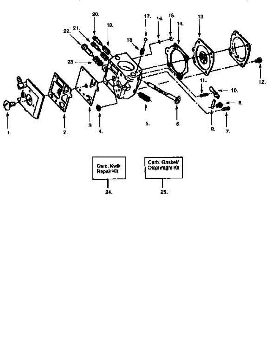 This is a carburetor repair kit for lawn and garden equipment. It can be used in situations where the carburetor is clogged and no longer capable of putting the right amount of fuel through the engine. The carburetor is a part that is responsible for mixing fuel and air inside of a combustion engine. It then sends the mixture to the cylinder to power the engine. A yard and garden tool with a carburetor can experience a build-up of debris or stickier material over time that can clog up the carburetor and create issues with the engine. This can make the trimmer run sluggish or cause problems with other components. If the situation gets worse, the engine may not start at all. When this happens, a carburetor repair kit has the needed components to rebuild the carburetor.This carburetor repair kit is a genuine OEM component sourced directly from the manufacturer. It is sold as an individual kit. The repair kit is compatible with certain string trimmers and chainsaws manufactured by Craftsman, Poulan, and Poulan Pro. The replacement may require an Allen wrench, needle-nose pliers, and a Phillips screwdriver.