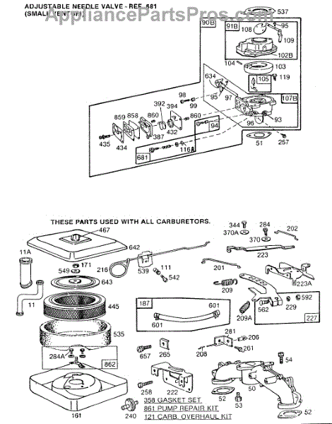 Parts for Briggs & Stratton 402415-0682-01: Carburetor Assemblies, A / C Parts