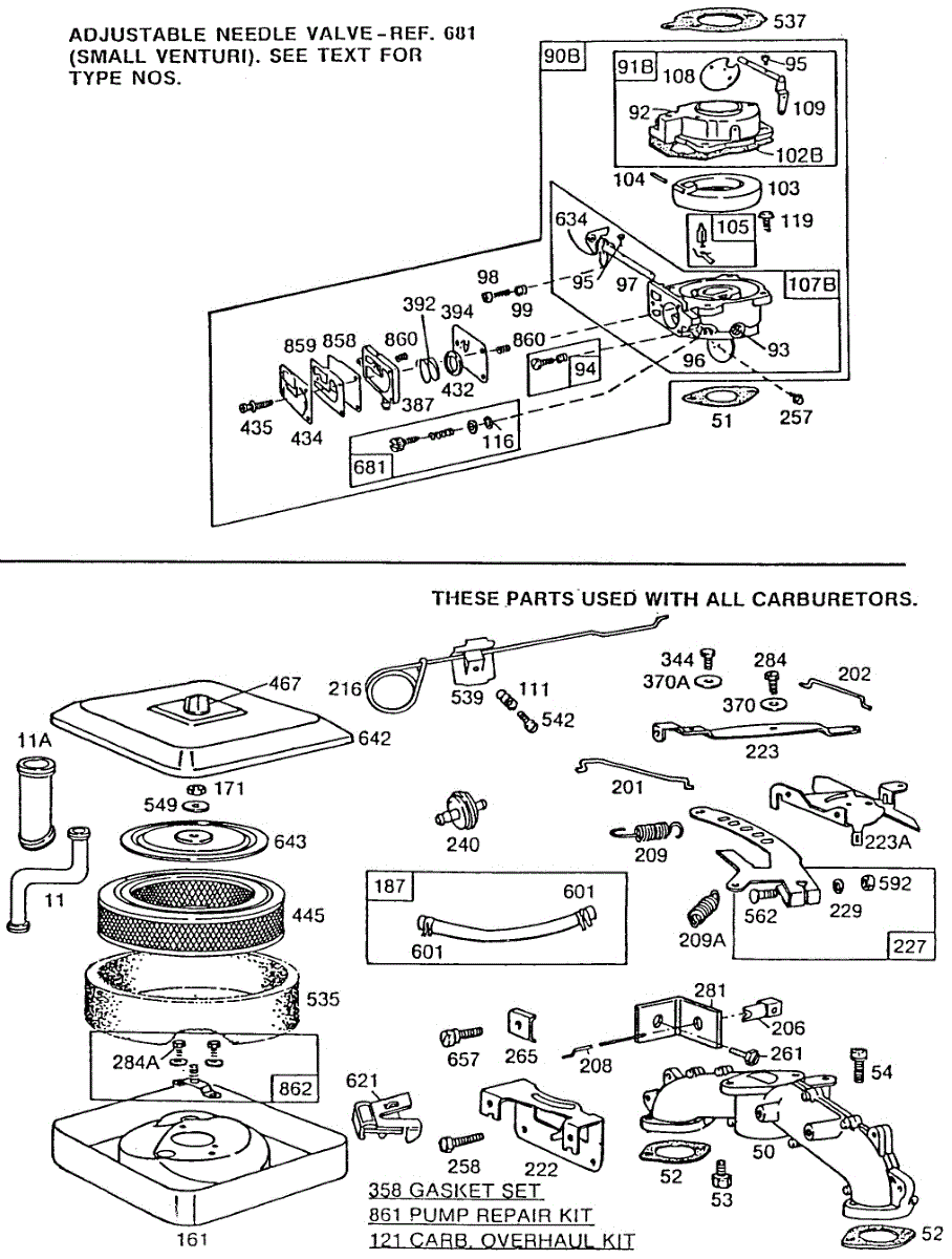 Parts for Briggs & Stratton 422437-1882-E1: Carburetor Assemblies, A / C Parts