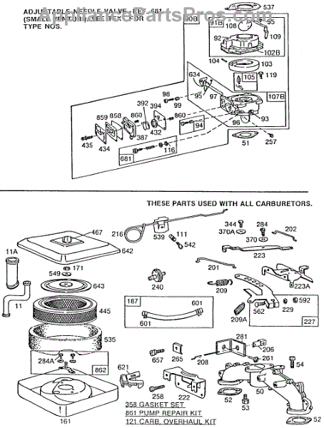 Parts for Briggs & Stratton 422437-4845-E1: Carburetor Assemblies, A / C Parts