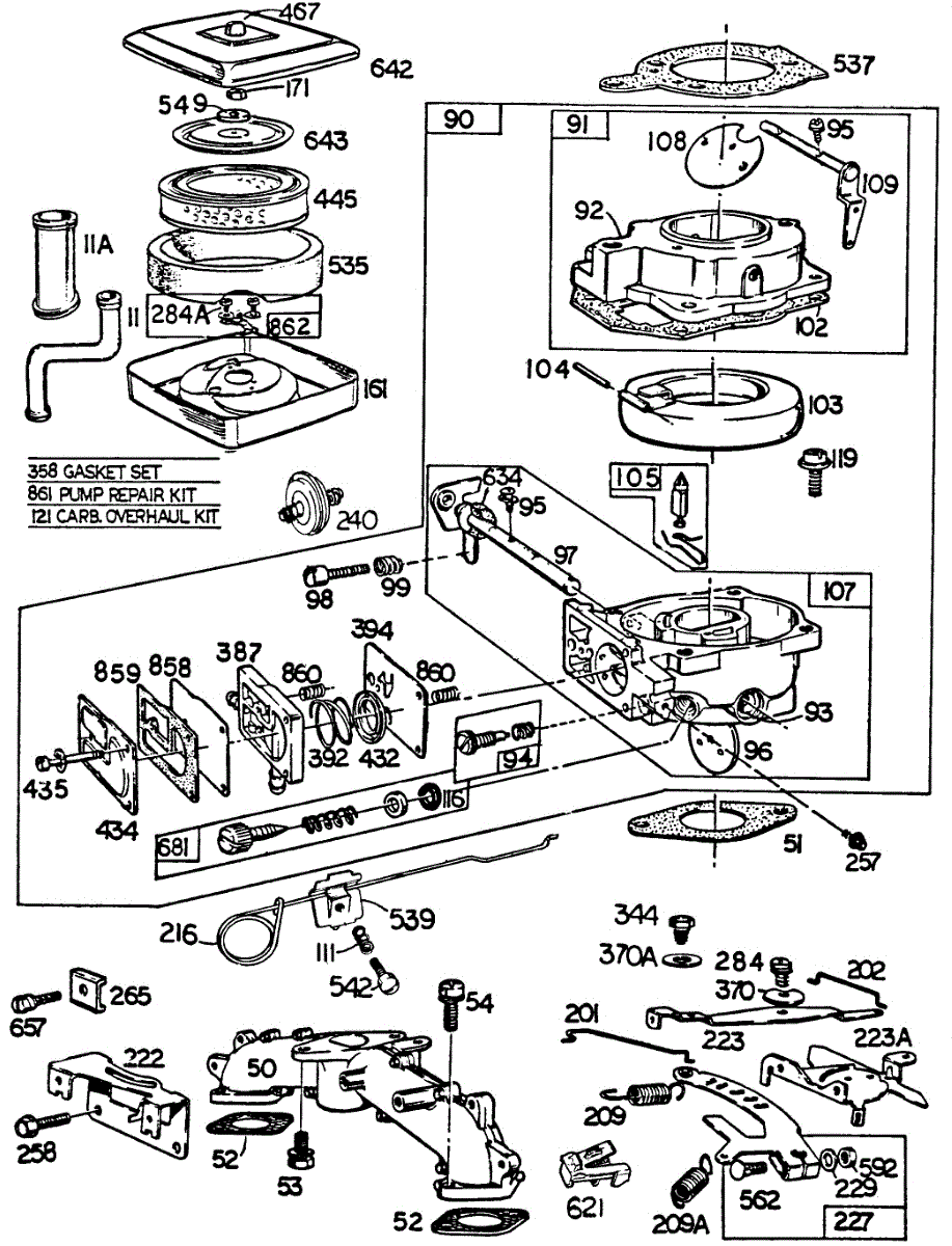 This fuel pump kit is made for use with lawn and garden equipment with small engines. The kit comes with all the diaphragms, gaskets, and additional parts needed to completely rebuild a fuel pump. It may be required if the lawn tool has fuel pump issues such as sluggish performance, leaks, and other problems. It can be used to fix the most common issues related to worn out diaphragms and gaskets.The fuel pump in lawn and garden equipment is a component that helps bring fuel from the tank to the engine when the carburetor is mounted at a lower position than the carburetor. With these kit parts, many issues with the fuel pump can be alleviated. Replacement requires a nut drive, a wrench set, and a socket set. The fuel pump will need to be disassembled to replace the parts that are not working correctly.This fuel pump kit is a genuine OEM replacement part sourced directly from the manufacturer. It's sold as an individual kit. The kit is designed to be used in lawnmowers and snowblowers manufactured by MasterCut, Briggs & Stratton, Craftsman, Simplicity, Toro, and Cub Cadet.