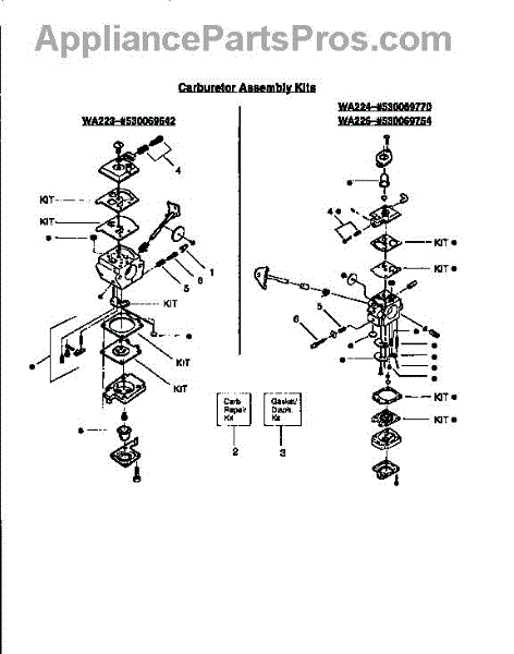Parts for Craftsman 358798520: Carburetor Assembly Kits Parts