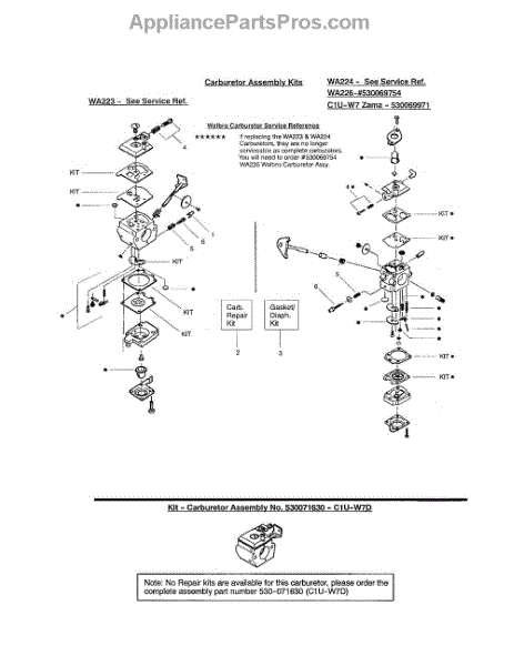 Parts for Weedeater FEATHERLITE TYPE 5: Carburetor Assembly Kits Parts