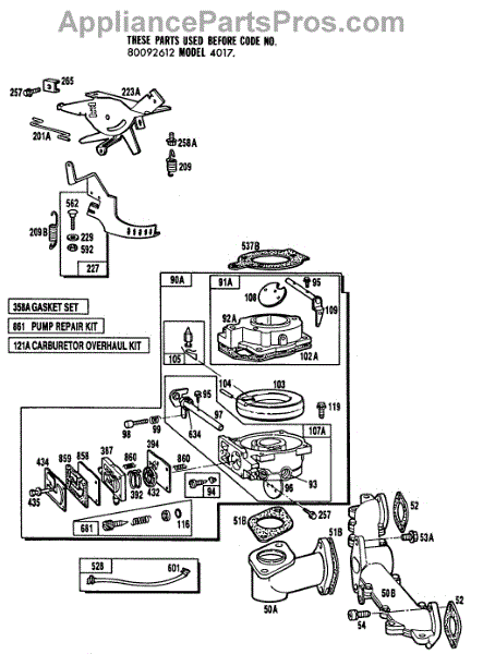Parts for Briggs & Stratton 402707-0111-01: Carburetor Assembly,Manifold Parts
