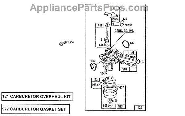 Parts for Briggs & Stratton 091708-0200-01: Carburetor Assembly Parts