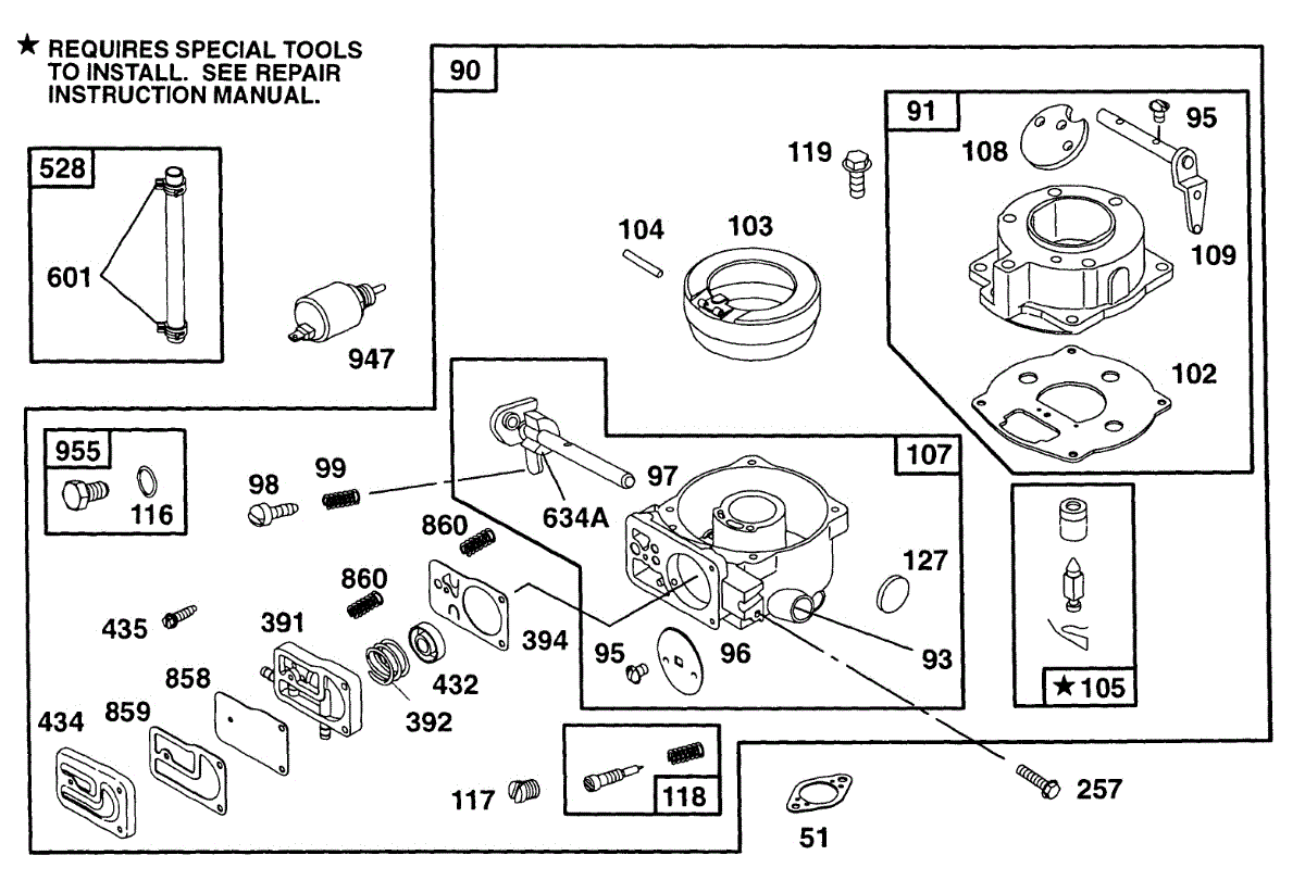 Parts for Briggs & Stratton 402447-1214-01: Carburetor Assembly Parts