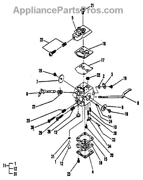Parts for Mcculloch EB285BC-11400128-08: Carburetor Assembly Parts
