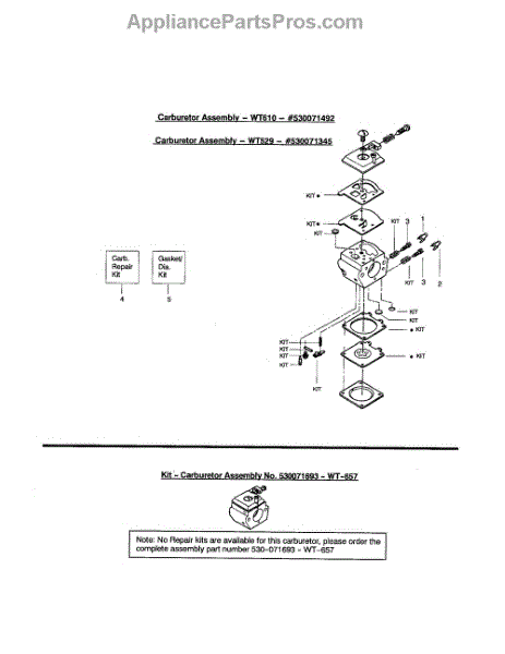 The carburetor repair kit includes gaskets, a float needle, and a spring. It is designed to fix chainsaws.A carburetor (also commonly spelled carburettor) is a device designed to mix air and fuel for internal combustion engines in the proper air-to-fuel ratio for combustion. It is often abbreviated to "carb," especially in North America. This carburetor repair kit contains essential replacement gaskets and other necessary components to rejuvenate a carburetor. Signs of a carburetor needing repair include poor fuel economy, the machine idling too fast, or the engine flooding when trying to start it. For older chainsaws, the inevitable carburetor repair process is likely inevitable. Fortunately, though, the process is quite uncomplicated, just keep track of the order in which parts are assembled. Be sure to catch the spring that tends to go airborne from the needle valve, and soak everything in carburetor cleaner before reassembling.This is a genuine OEM replacement kit. This repair kit is compatible with the following brands: Craftsman, Husqvarna, Poulan, and Poulan Pro. It is sold as an individual kit.