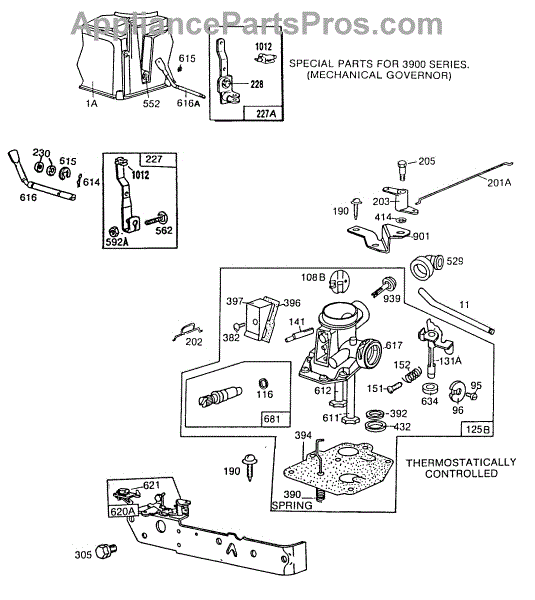 Parts for Briggs & Stratton 112982-3913-01: Carburetor Assy,Control Brkt Parts