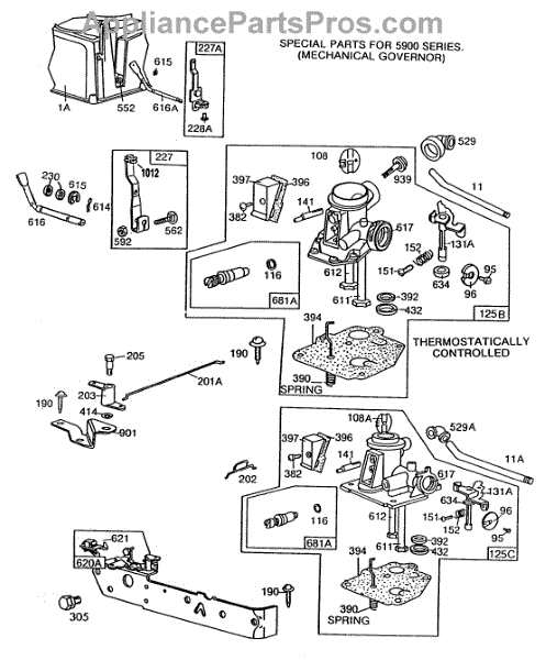 Parts for Briggs & Stratton 110988-1244-01: Carburetor Assy,Controls Parts
