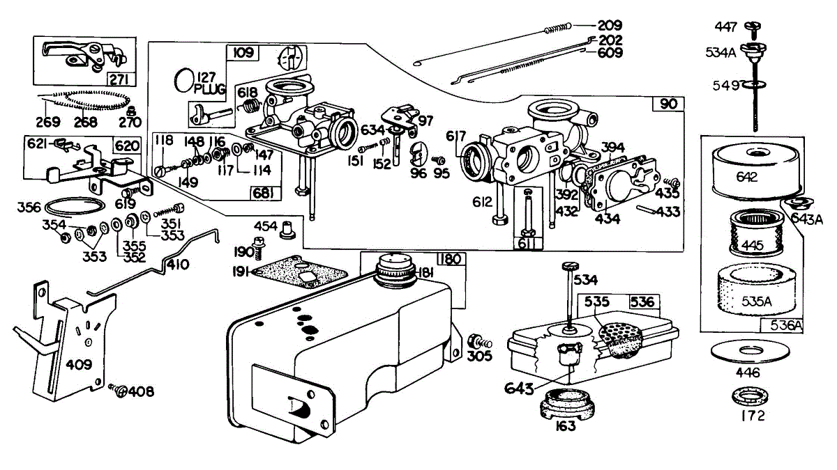 Parts for Briggs & Stratton 100902-0139-99: Carburetor Assy,Fuel,A / C Parts