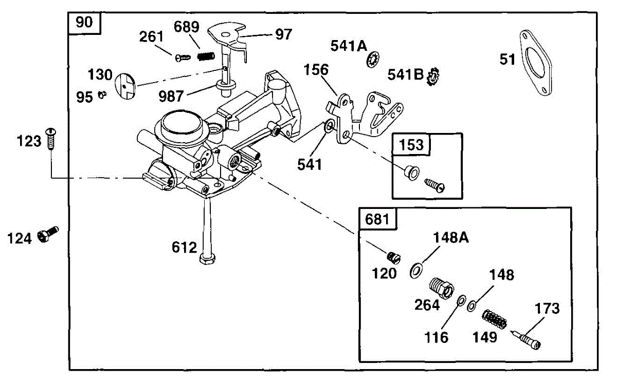Parts for Briggs & Stratton 090102-0124-01: Carburetor Assy Parts
